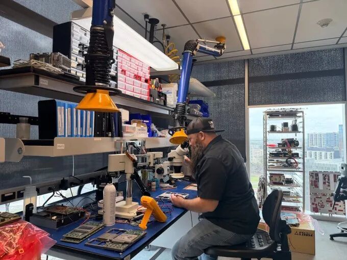 这家芯片实验室位于奥斯汀高档的“The Domain”区一栋闪亮的镀铬玻璃窗建筑内。“The Domain”是一个步行可达的区域,遍布商店和餐馆,有时也被称为奥斯汀的硅谷。。